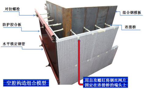 4 模塊與連接橋和連接橋與模板的原配組合,構(gòu)成了截面尺寸準(zhǔn)確的空腔構(gòu)造,提高了現(xiàn)澆混凝土復(fù)合墻體的易施工性能,做到了精細(xì)化施工。